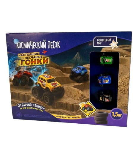 Набор космического песка “Гонки“ в комплекте с песочницей 1,5 кг